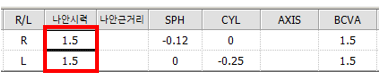 재수술 다음날 양안 모두 시력이 1.5로 크게 향상되었고,